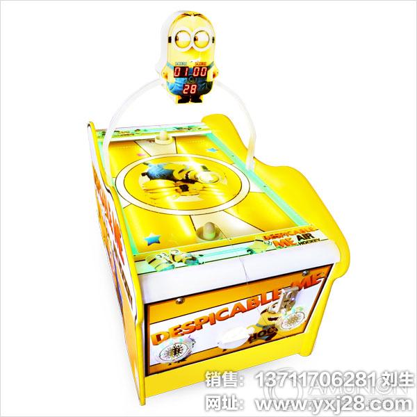 小黄人曲棍球游戏机是一款深受国内外小朋友热爱的儿童益智游戏机。其独特的外观设计,炫丽的灯光效果,灯光快慢节奏可根据场地需要自行调节。游戏中,双方进攻和相互提防,使玩家紧张刺激,伴随着美妙的音乐和音效,以及灯光节奏快慢结合,将竞技和娱乐完美结合;传统经典曲棍球类游戏玩法,亲子类互动游戏,二人对战中充分发挥脑力判断能力和手眼结合的敏锐迅速能力,小朋友及父母交流互动游戏经典设备,儿童场地至爱;小黄人曲棍球自有开发独特程序,选用高品质电子芯片,程序稳定高效;多款外观专业设计,适合任何风格的游乐场及儿童乐园随心选择,场地必备人气机台,可放于儿童游乐场,超市,电玩城,商场,等场地。