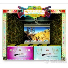 产品概况:使用投影仪技术(可选3D)、有线模拟枪(空气压缩机型)、4-8人可同时使用、游戏 (5种)不断更新增加