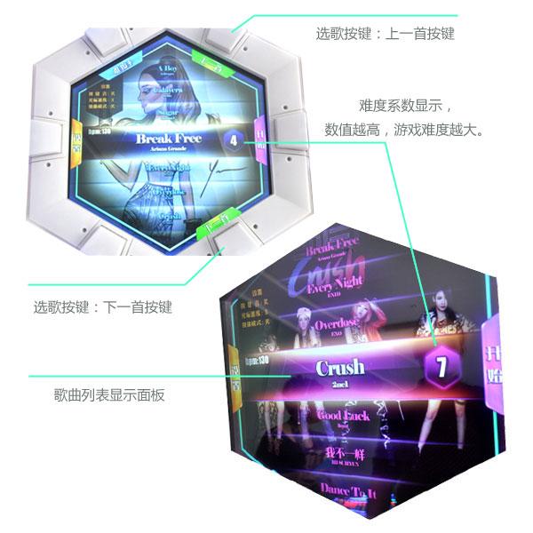 舞立方游戏机是一款全新的模拟音乐游戏机,独具特色的外观加上炫酷的灯光设计让玩家玩起来心旷神怡,独特的玩法,独特的感觉,享受独特的欢乐!