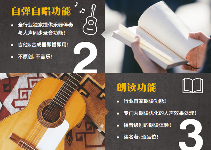 1)全行业独家提供乐其伴奏与人生同步录音功能