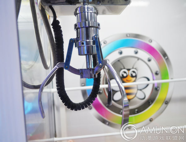 3、按下控台上的确认按钮,爪子便会垂直放下,然后呈合拢状抓取所选中的娃娃。