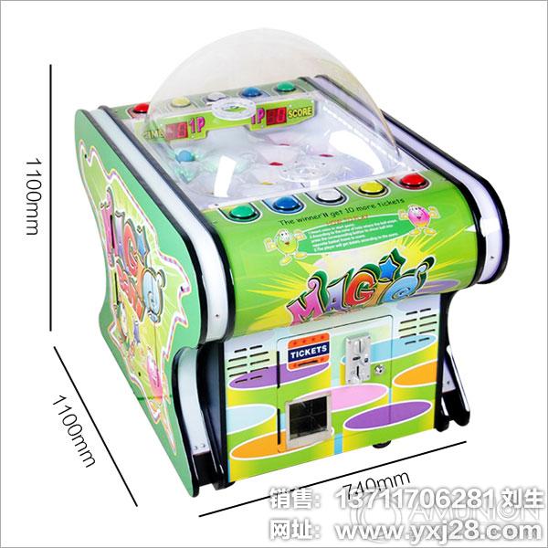 小魔球游戏机是一款以篮球为主题的弹球类益智游戏机台。卡通风格设计,惹孩子们喜爱。游戏玩法简单,双方玩家只需按底部颜色框对应颜色的按钮将球弹入对方的篮框内内即得分,考验玩家的反应能力。