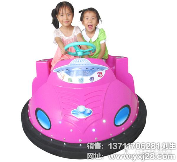 飞碟碰碰车外表飞碟型设计,有玫红、蛋黄、橙色、嫩绿、蓝色、等丰富的颜色,40余组七彩LED灯分布在周围,边缘配有高强度橡胶防撞条,火焰型车身贴及卡通图案更是亮点所在。
