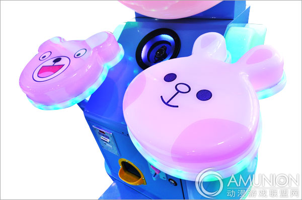 小鼓明星游戏机是一款根据歌曲节奏来敲击的儿童音乐游戏机台,外观小熊和小兔子的造型,搭配五彩的灯光,可爱大方。游戏内置音乐都是孩子们熟悉的儿歌,符合孩子们的喜好及玩乐的能力匹配。