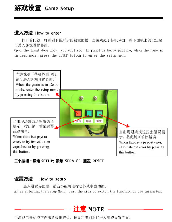 1、投入所需游戏代币后,敲击小鼓开始游戏。